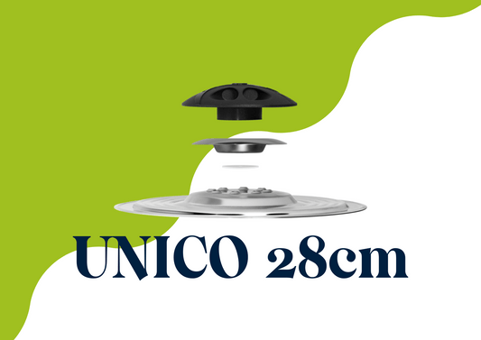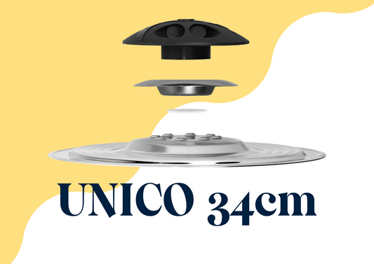 UNICO funziona su qualsiasi pentola o padella che hai in casa, basta che UNICO appoggi bene su